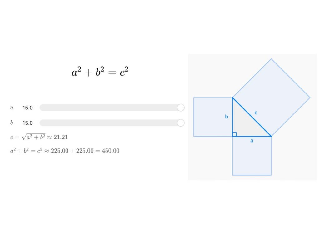 In numbers: 3² + 4² = 5² → 9 + 16 = 25 ✓